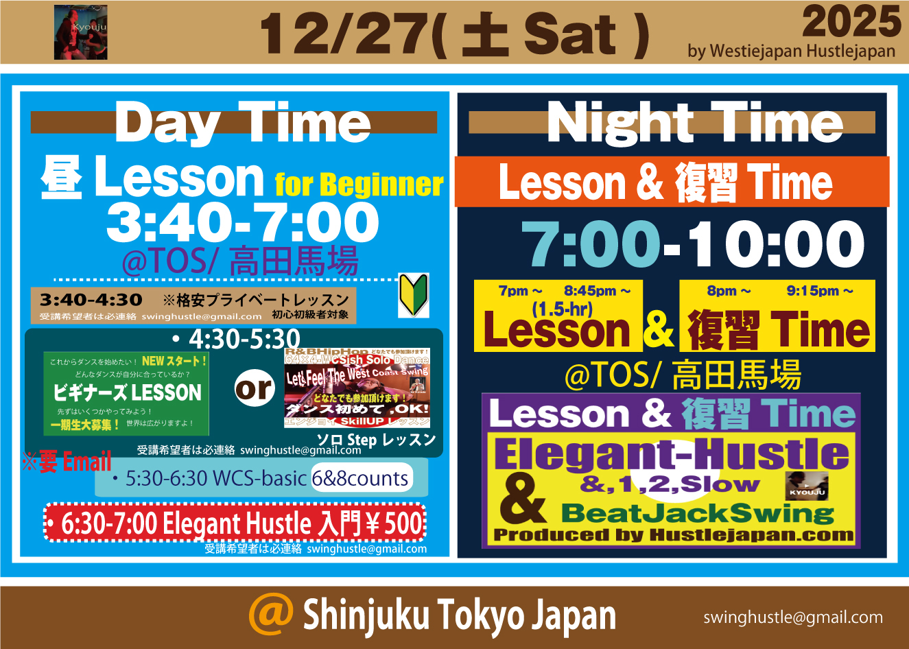 ※上記3つの中より2つのElegant & Sin-Hustleダンスは、Hustlejapan.comDANCEよりオリジナルダンスとして始まり、東京より展開しています