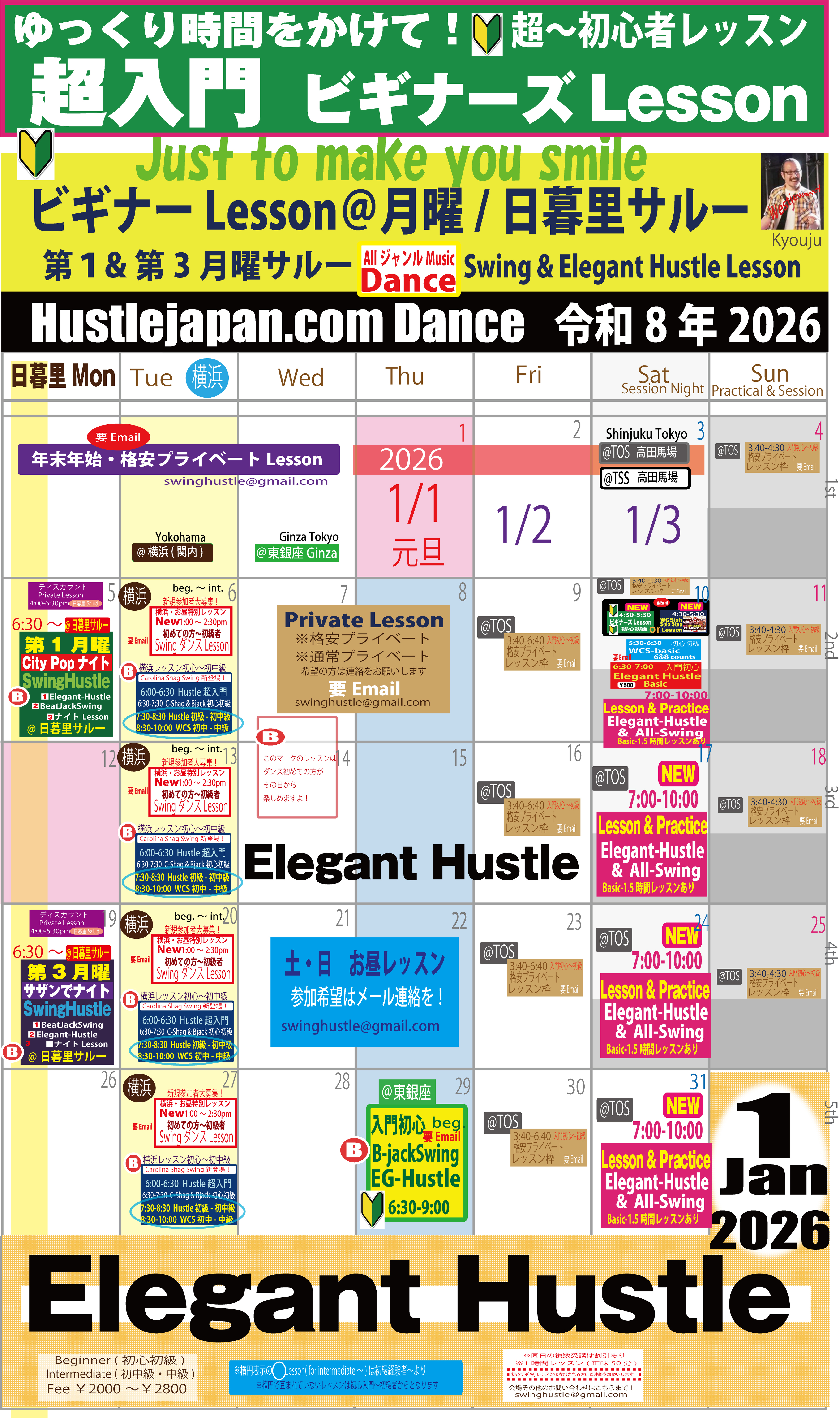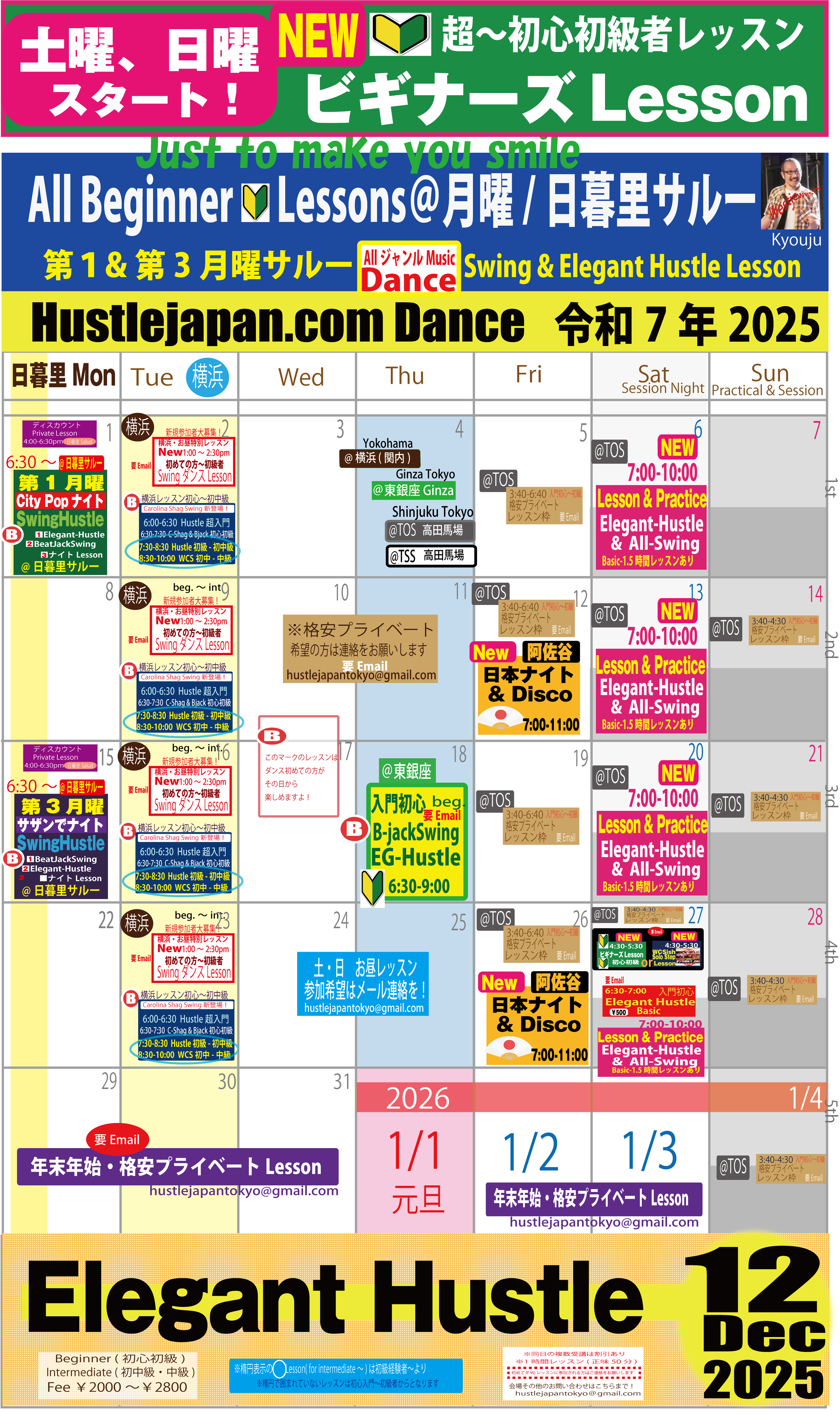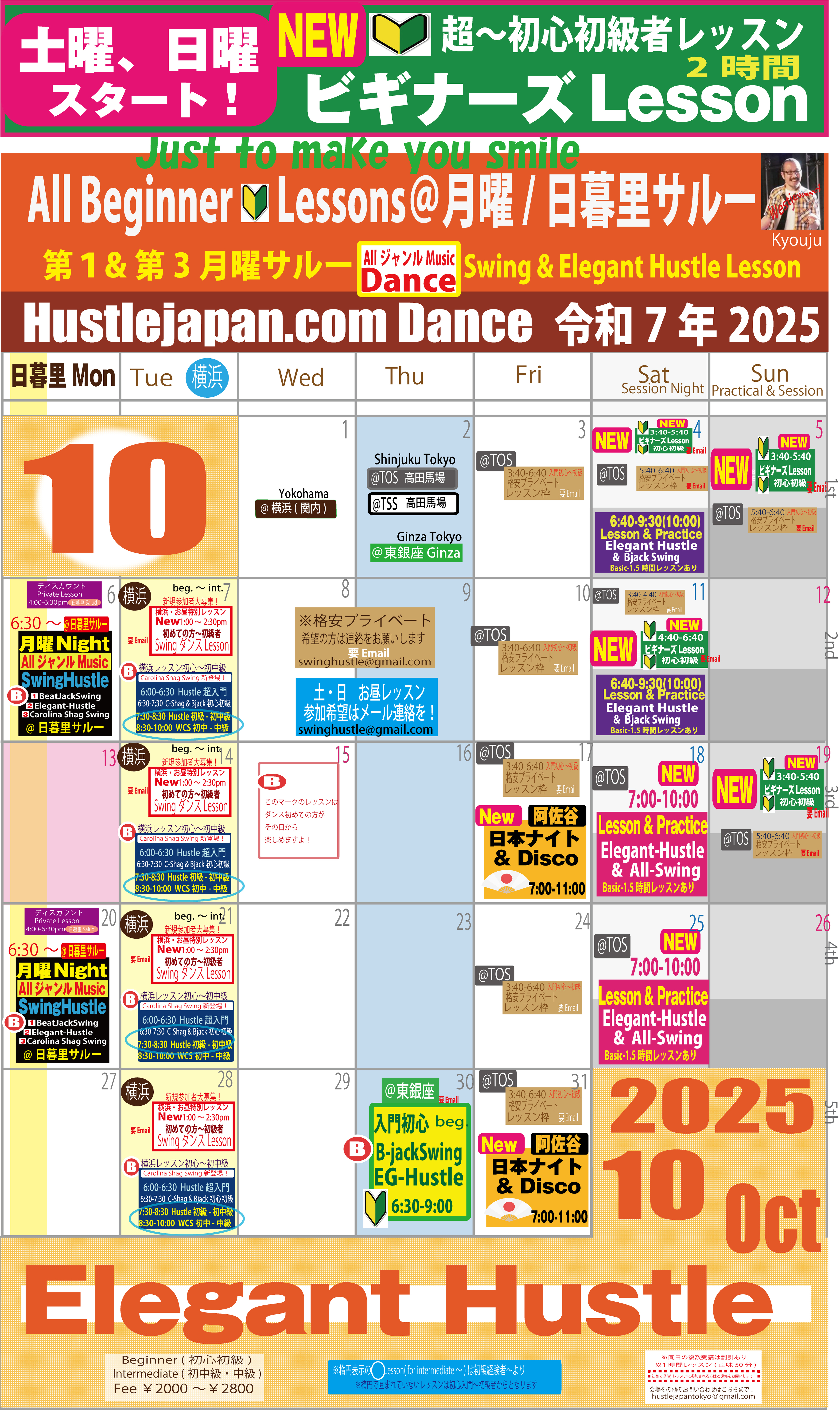 ①<6:00-6:30pm Hustle初心basicレッスン>