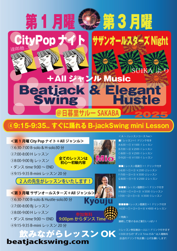 ②<6:30-7:30pm Bjack + 新登場-Carolaina Shag Swing 初心初級レッスン>
