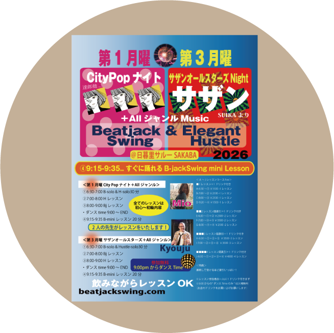 ①■6:30-7:30pm BeatjackSwing ..¥2000